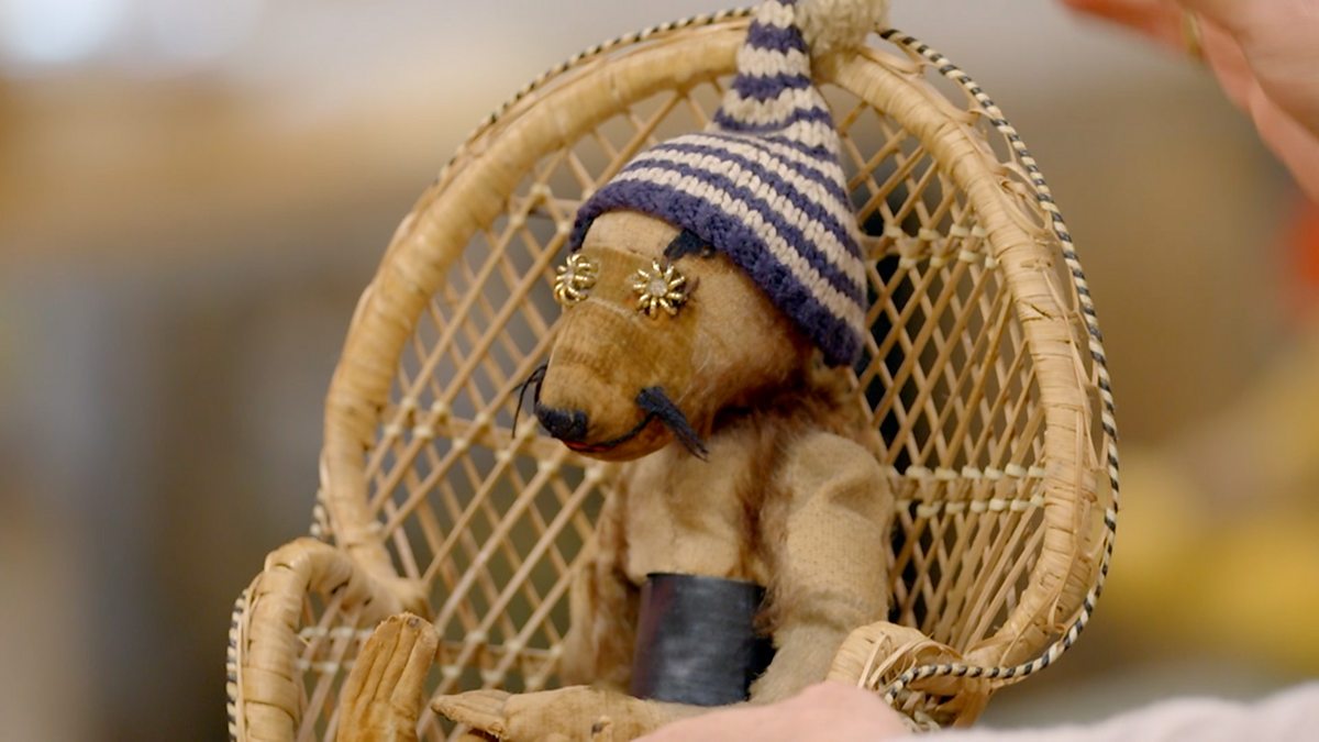 Former children's TV presenter Jenny Hanley introduces her cherished stuffed monkey Alphonse who helped her grandmother take relaxed portraits of young royals - most notably Princess Elizabeth and Margaret - by focusing their attention to the camera.