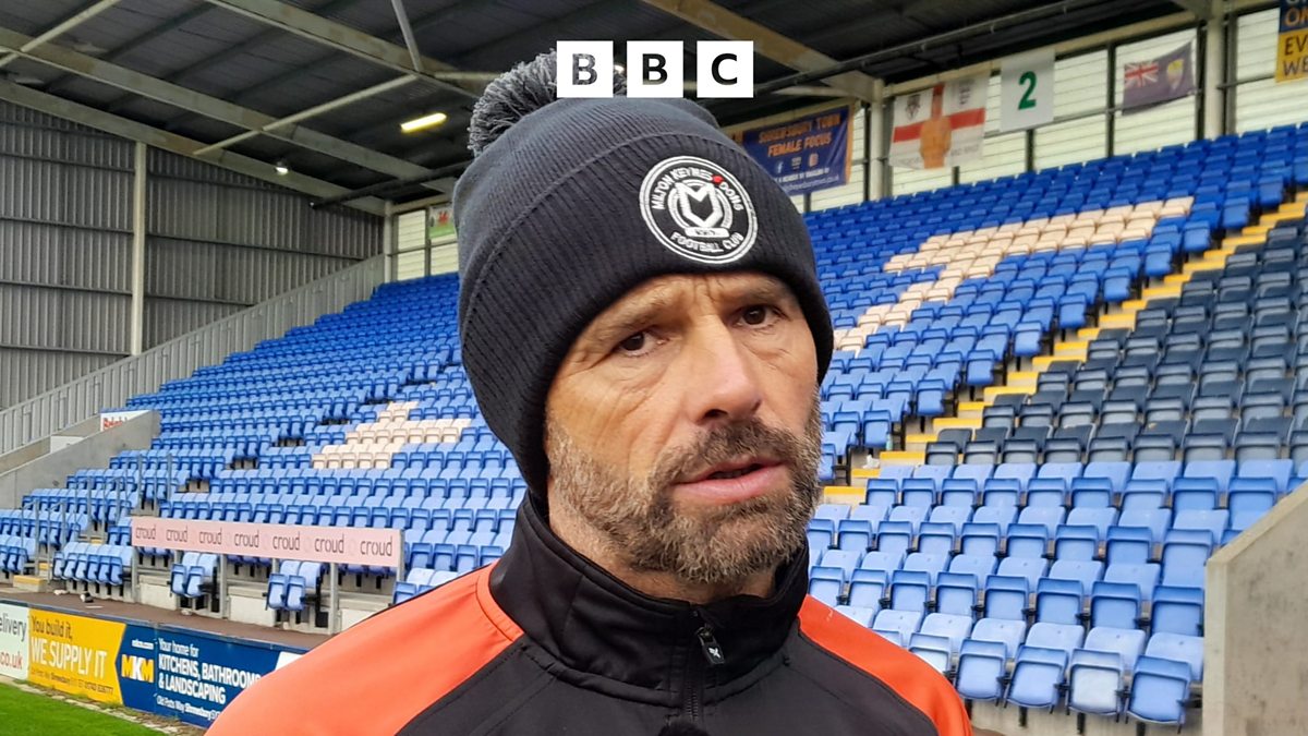 Paul Warne reacts after MK Dons lose 2-1 against Bromley in League Two.