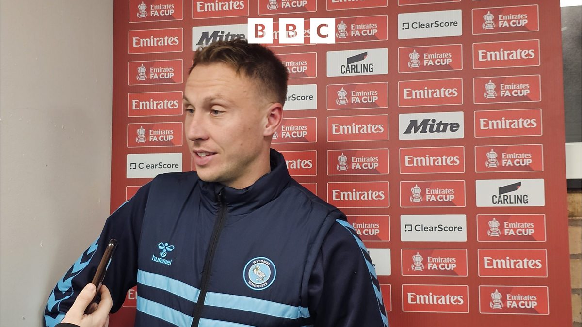 Cauley Woodrow reacts after scoring both of Wycombe's goals as they beat Plymouth 2-0.
