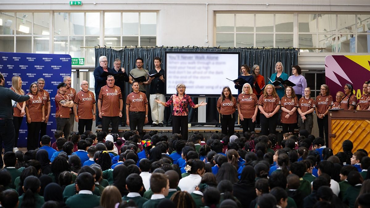 The choir, made up of 50 Bradford City fans, performed for hundreds of school children across six different schools in the city. They were accompanied by the BBC Singers and world-renowned opera singer Lesley Garrett.