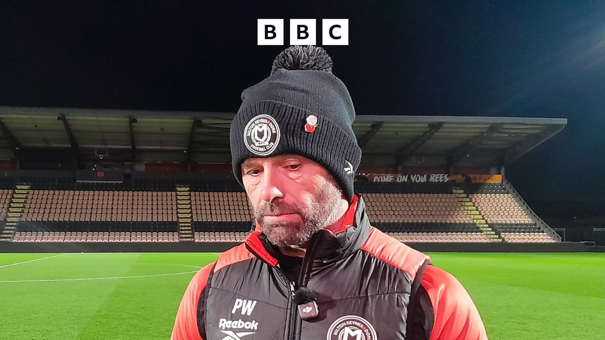MK Dons boss Paul Warne reacts after coming from 2-0 down to draw 2-2 at Barnet.