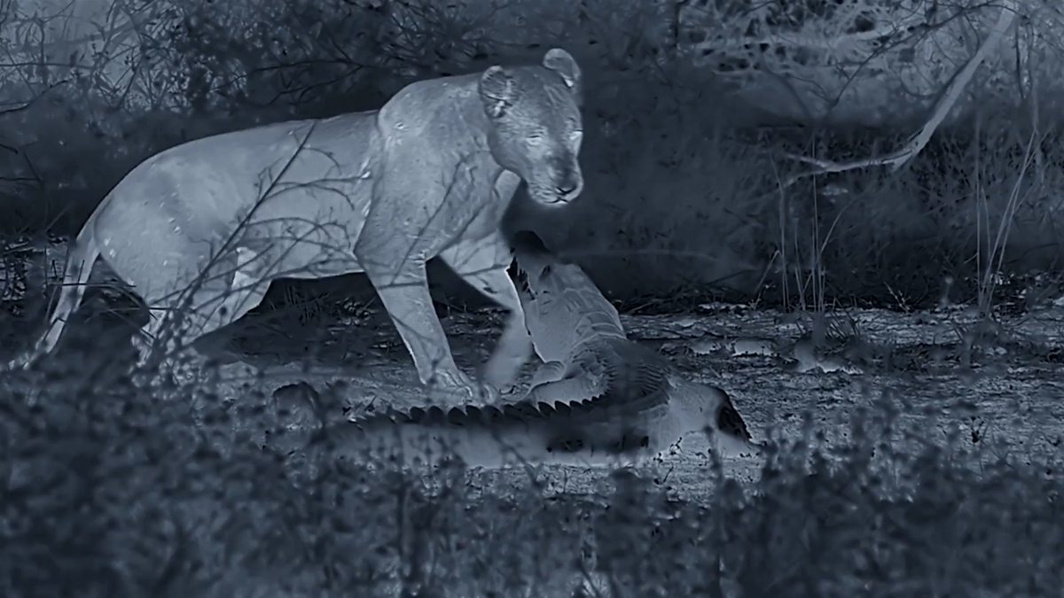 Even in the dark of night, lions dominate the most dangerous of animals.