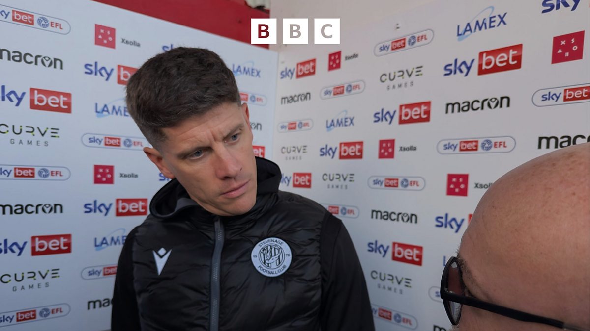 Alex Revell reacts after Stevenage draw 2-2 against Burton Albion in League One.