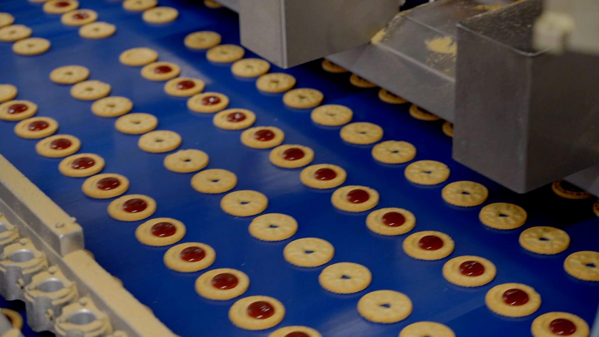 Paddy discovers that the 'depositor' dollops precisely 4.8 grams of smooth, raspberry-flavoured jam onto the bottom half of the biscuit, to an exact temperature.