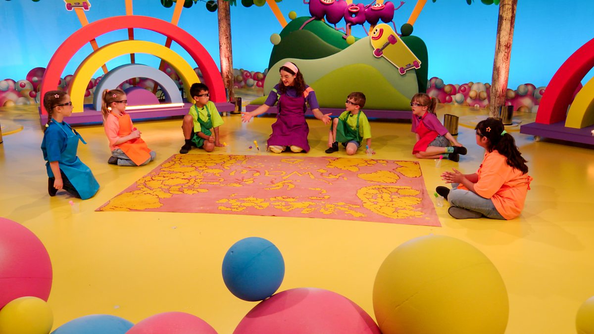 Lliwiau sy'n cael sylw Awi a chriw Waw y tro yma. The attention turns to colours this time, in the company of Awi and the 'Waw' crew.