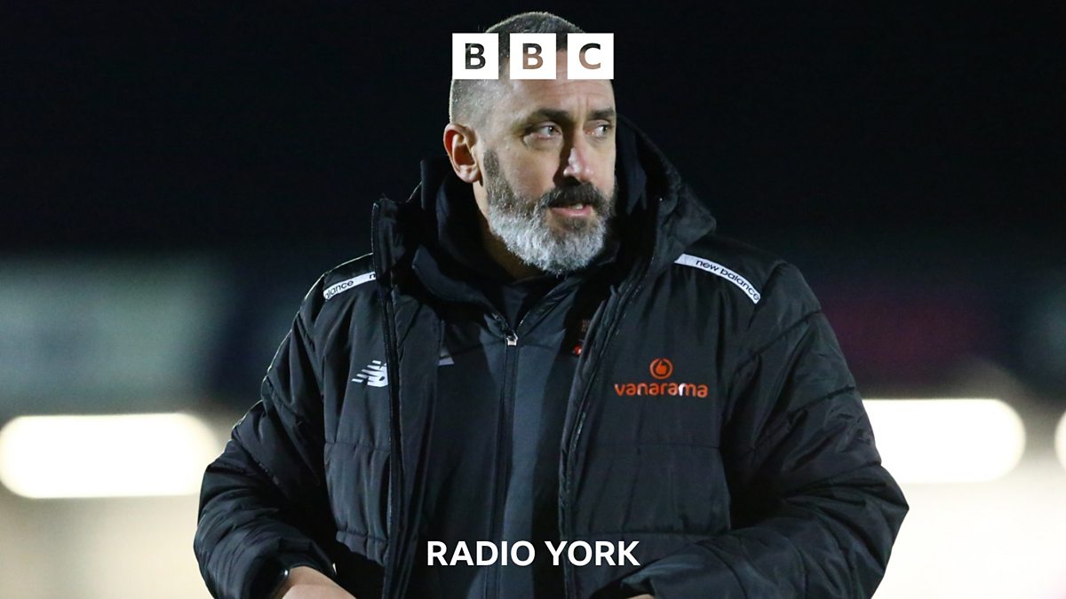 Scarborough Athletic manager Jonathan Greening speaking to Peter Spencer ahead of their trip to Marine in the National League North.