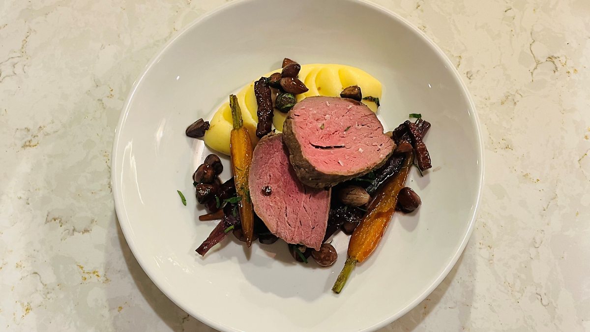Kat's at The Cookery School at The Grand hotel in York cooking steak & mash