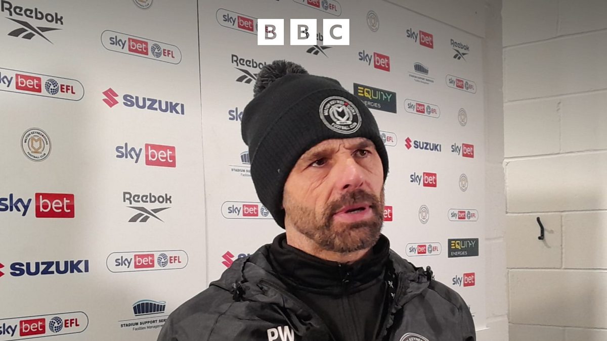 Paul Warne reacts after MK Dons beat Newport County 1-0.