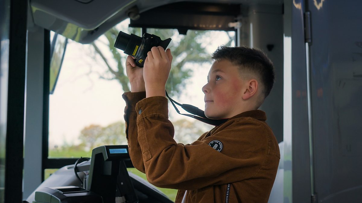 Tynnu llun ar gyfer hysbyseb i Drafnidiaeth Cymru yw'r her i'n pedwar ffotograffydd ifanc talentog o'r canolbarth. Our photographers try to take the perfect picture for a TfW advert.
