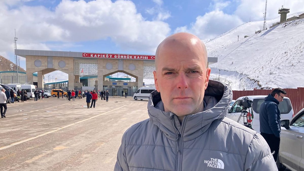 Rhodri Llywelyn ac Iwan Griffiths yn gohebu o Kapıköy, Twrci ger y ffin ac Iran