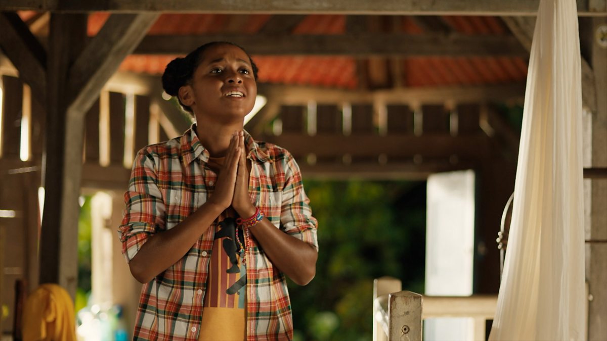 Mervin fills Naomi in on the presence of a mischievous young visitor in his shack.