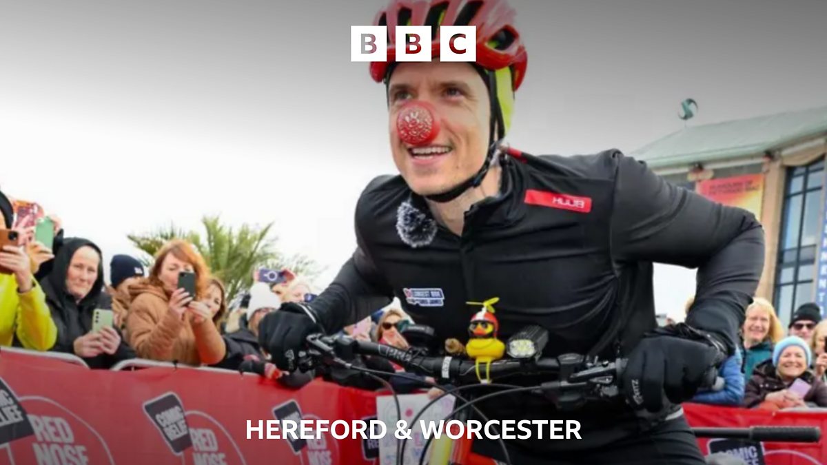 For Comic Relief, presenter Greg James will cycle through Ross-on-Wye heading towards Worcester as part of his epic 1,000km tandem challenge.