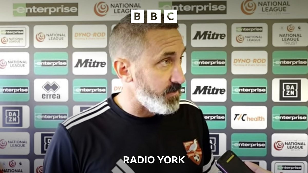 Scarborough Athletic manager Jonathan Greening, speaking to James Fletcher, after a 1-1 draw with AFC Telford United in the National League North.