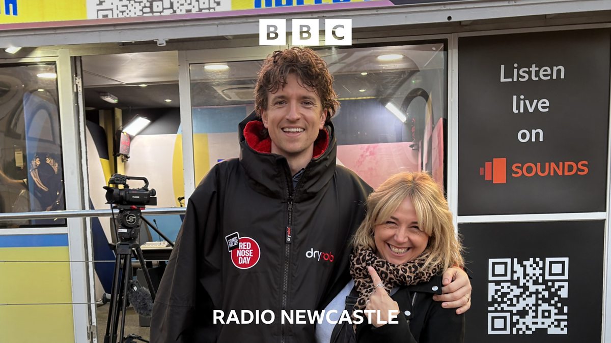 Greg James arrives in Sunderland at the end of day 6 in his tandem challenge