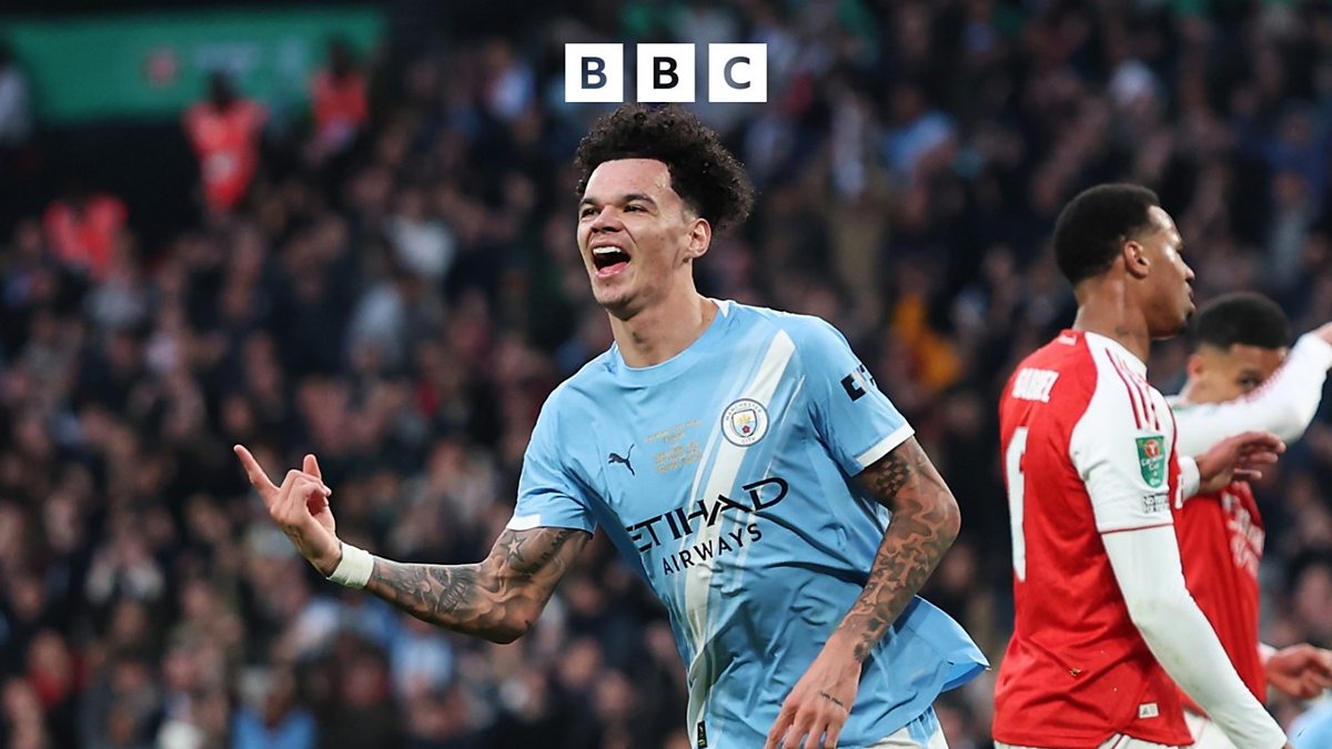 Nico O'Reilly and Phil Foden after beating Arsenal 2-0 in the League Cup final