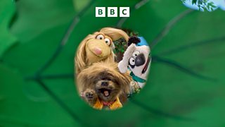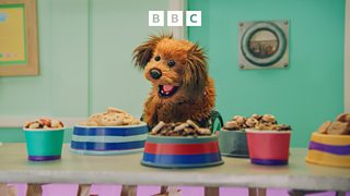 Miss Collie challenges the pups to build a raft to carry a biscuit across a paddling pool
