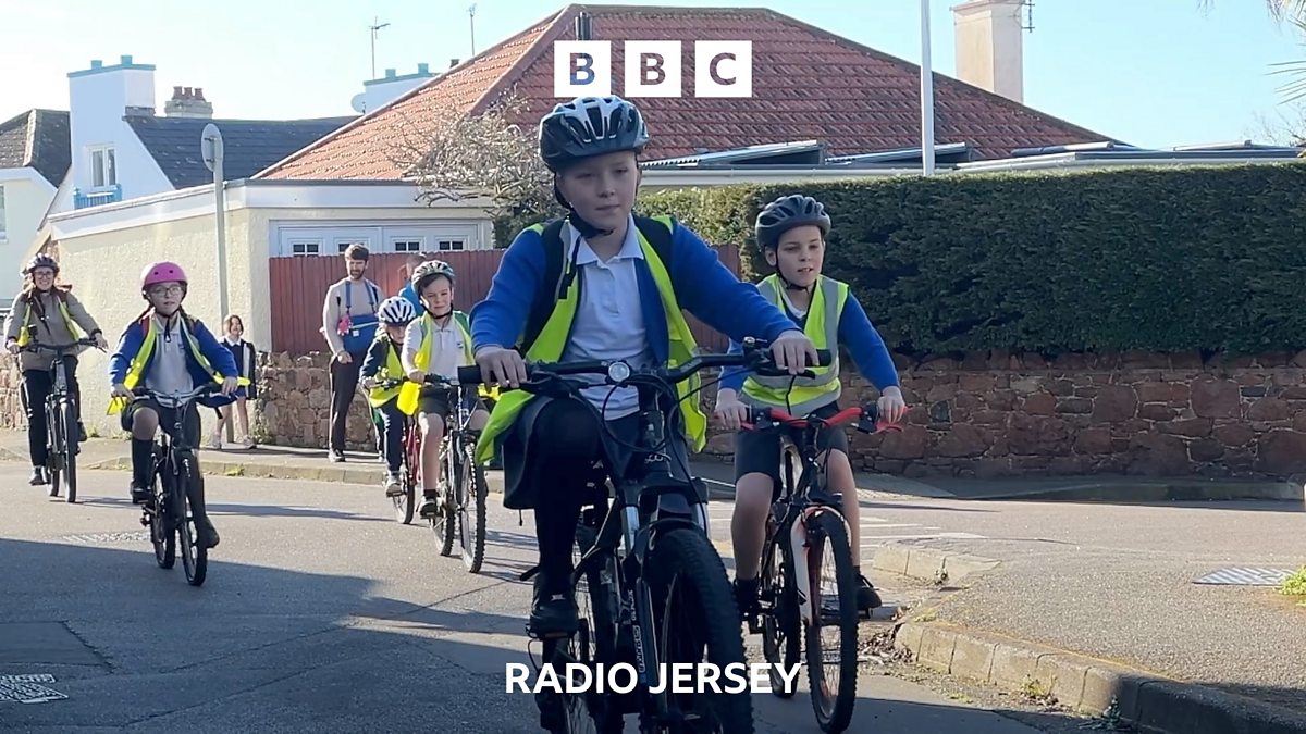 Chris Craddock caught up with the students using a 'Bike Bus' to get to Grouville school.