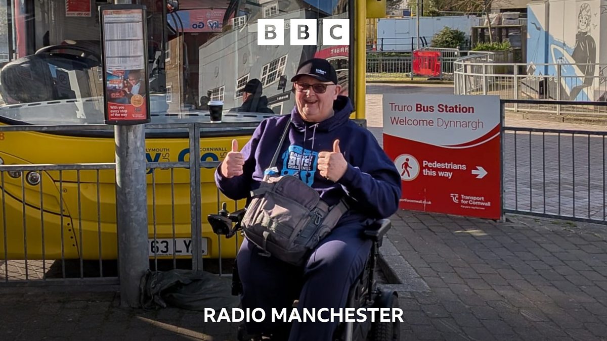 Barry Mackleston from Wythenshawe travelled seven days from John O' Groats to Land's End using his bus pass to raise money for Wythenshawe Community Rugby Club.