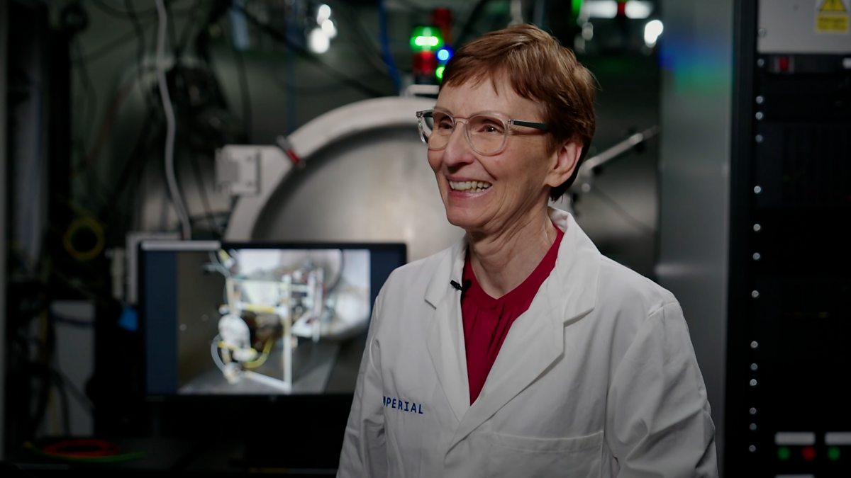 Presenter, George Dransfield, talks to Helen Sharman, Britain's first astronaut, in the Space Engineering Lab at Imperial College London. She explains what is like to go to space.