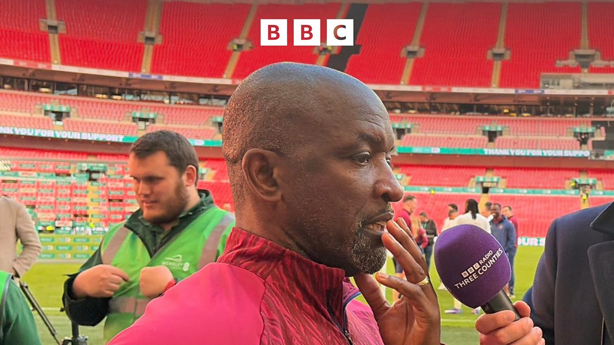 Chris Powell reacts after Luton win the EFL Trophy 3-1 against Stockport County.