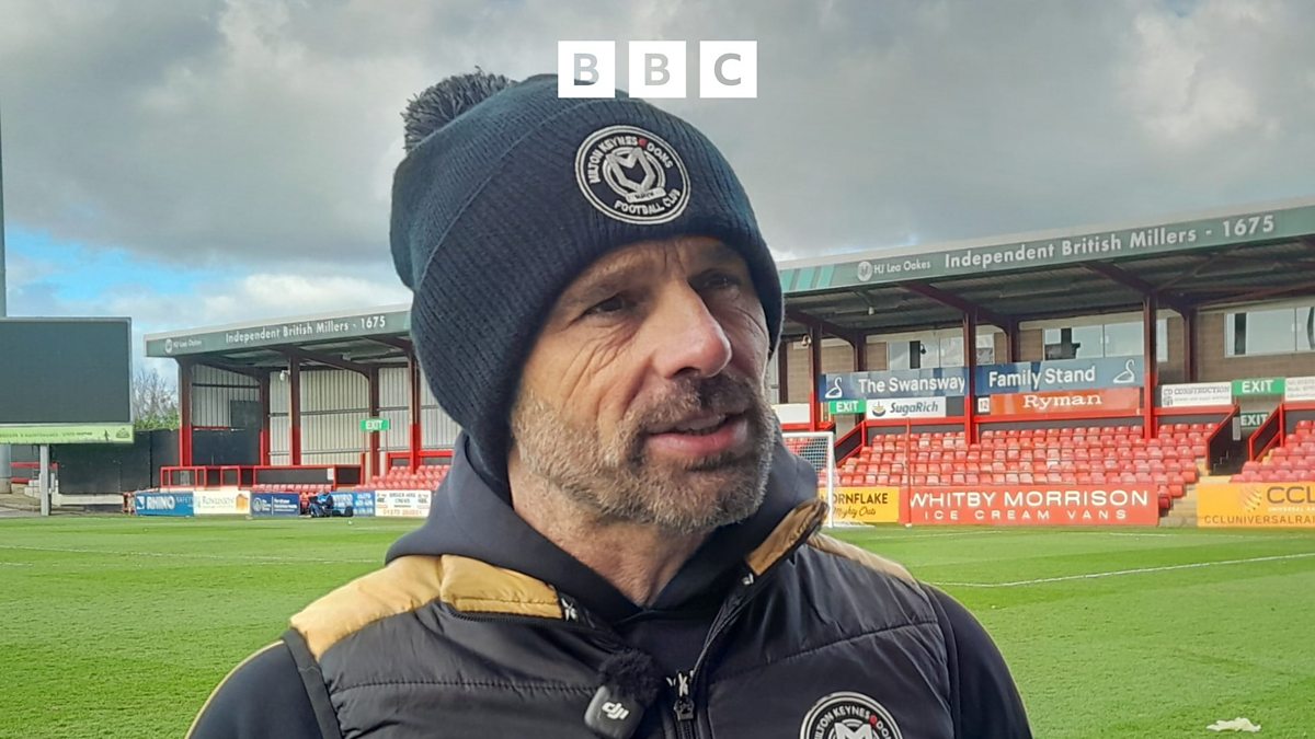 Paul Warne reacts after MK Dons beat Crewe Alexandra 3-1 in League Two.