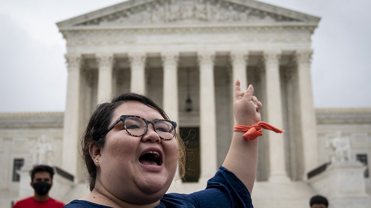 (Image: Greisa Martinez, who grew up as an undocumented immigrant in Dallas, Texas, reacts following the Supreme Court's decision. Credit: Drew Angerer / Getty Images)