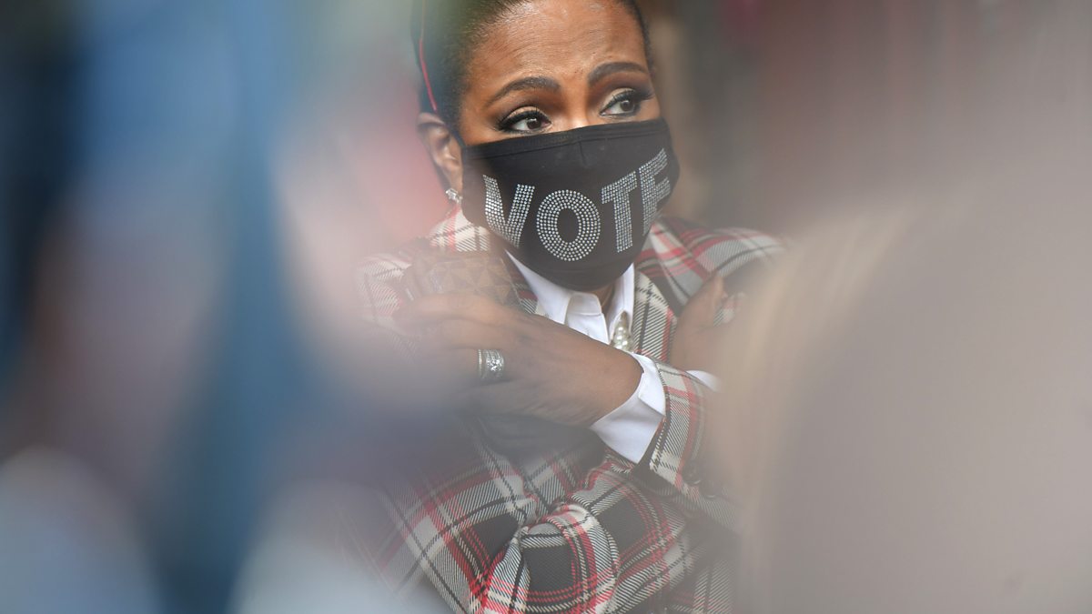 (Picture: Actor Sheryl Lee Ralph wearing a "VOTE" mask. Credit: Getty Images)