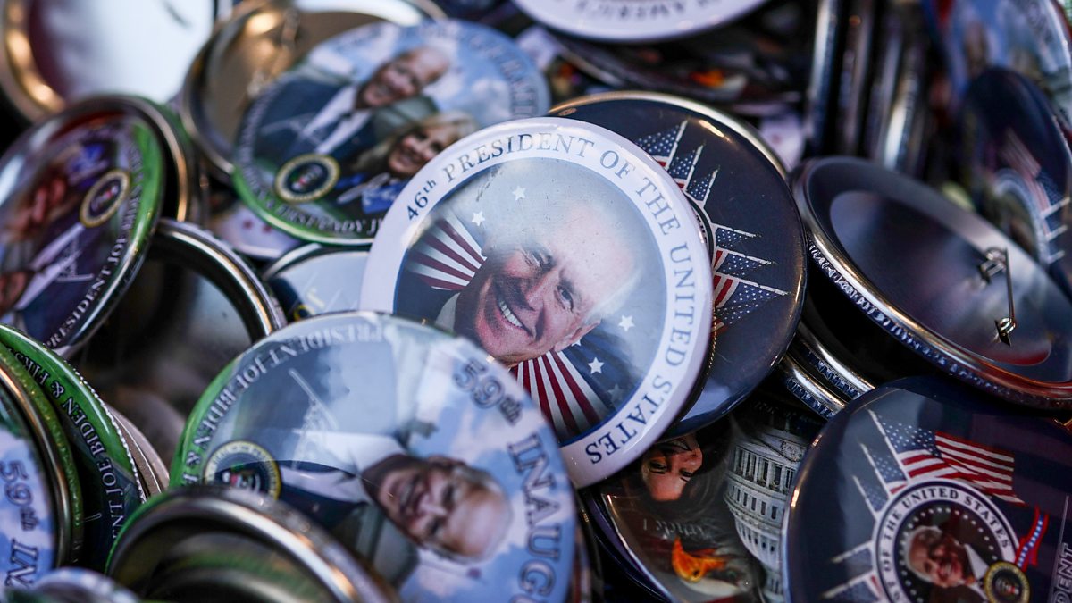 (Picture: Badges to mark the inauguration of Joe Biden as US president. Picture credit: Getty Images.)