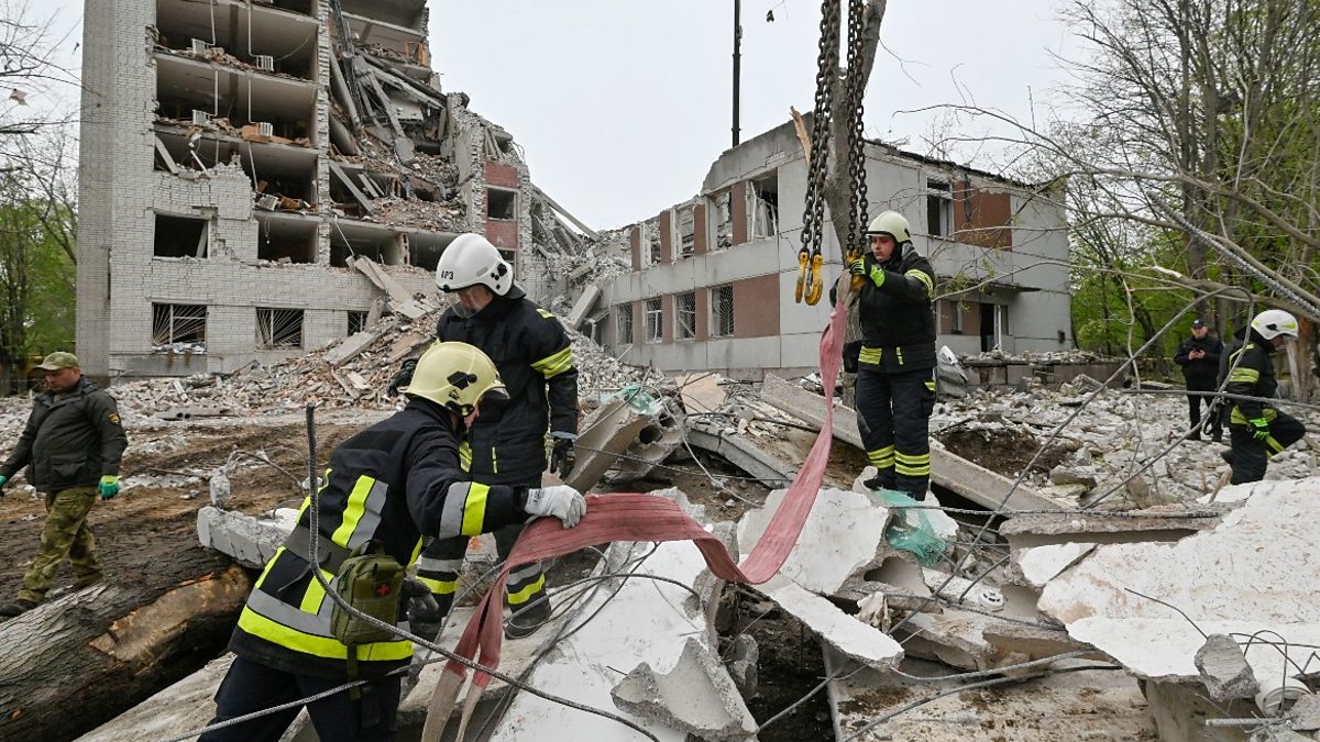 (Photo: At least 17 killed and dozens more injured in Russian missile strike in Ukraine's Chernihiv - 17 Apr 2024. Credit: SERHII OLEXANDROV/EPA-EFE/REX/Shutterstock)