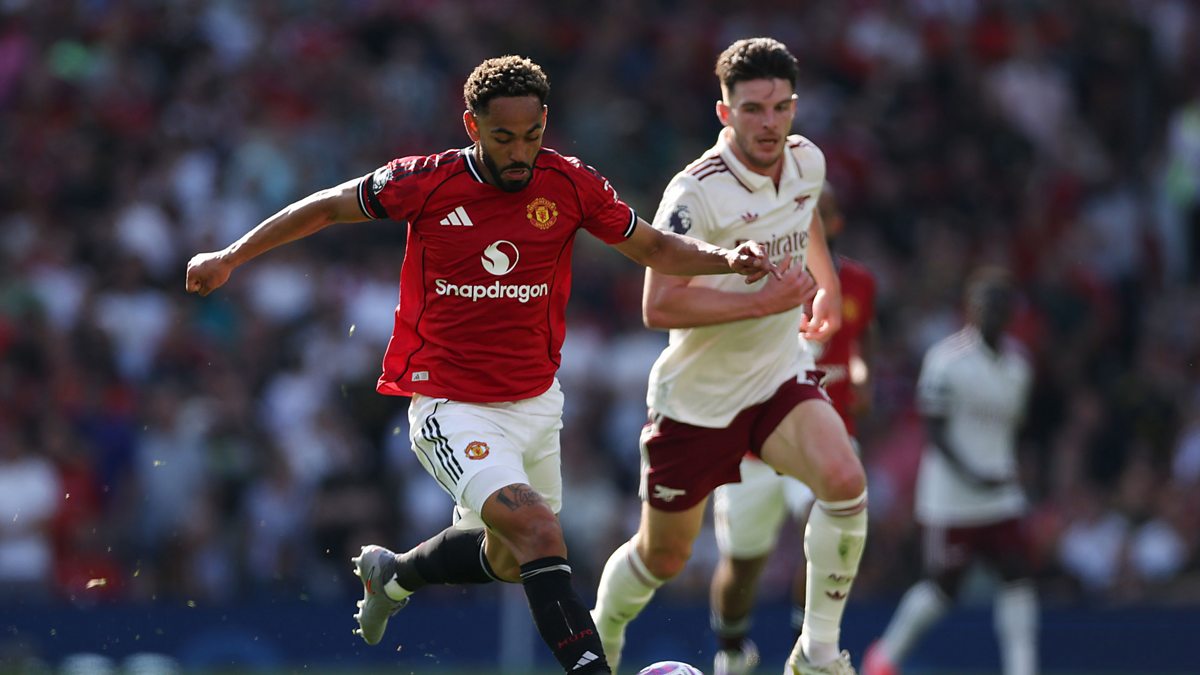 Photo: Matheus Cunha of Manchester United runs with the ball whilst under pressure from Declan Rice of Arsenal during the Premier League match between Manchester United and Arsenal at Old Trafford on August 17, 2025 in Manchester, England. (Credit: Getty Images).
