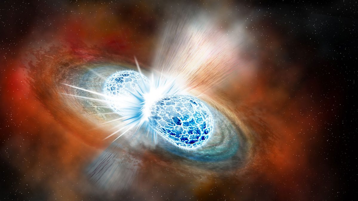 Picture: Artist’s concept of the explosive collision of two neutron stars. Credit: Illustration by Robin Dienel courtesy of the Carnegie Institution for Science