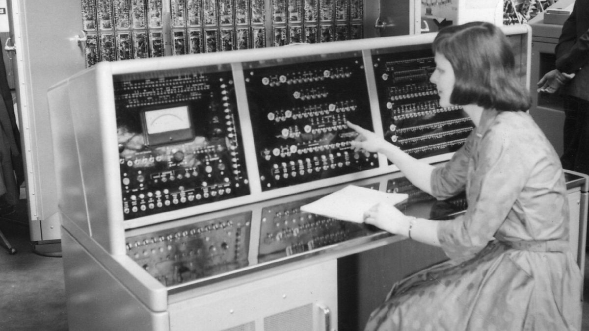 (Picture: A woman operating an 'electronic brain' used by a German mail order business to open letters in 1958; Credit: Keystone Features/Getty Images)