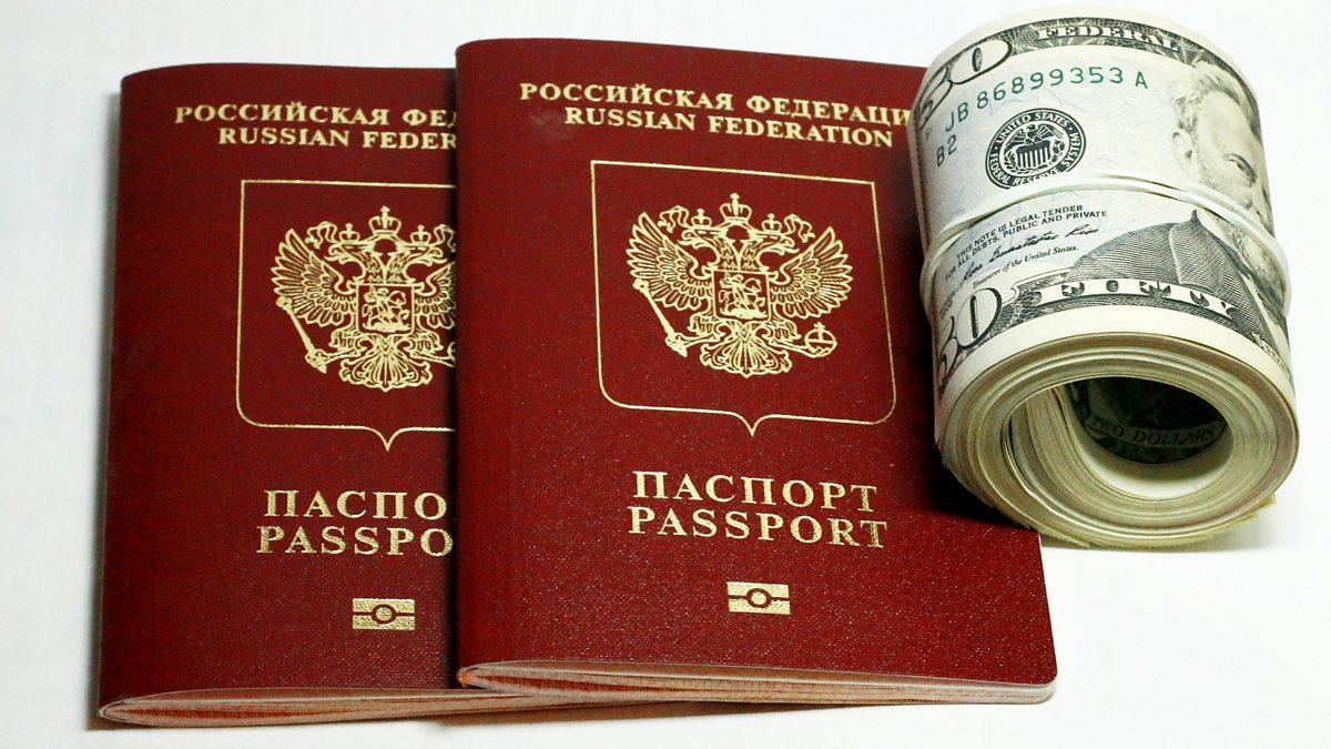 (Picture: Russian Passport and roll of US dollar banknotes; Credit: Scull2/Getty Images)