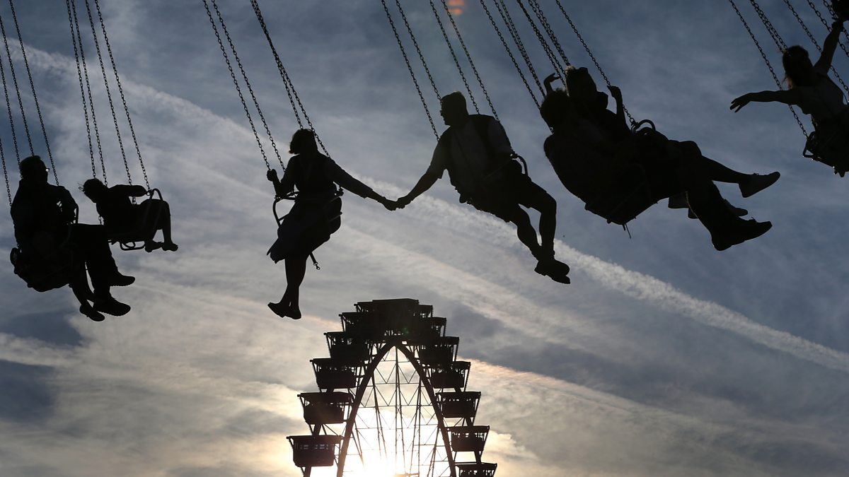 (A couple hold hands as they ride a merry-go-round at the Theresienwiese fair ground of the Oktoberfest beer festival in Munich, Germany. Credit: Karl-Josef Hildenbrand/Getty Images)