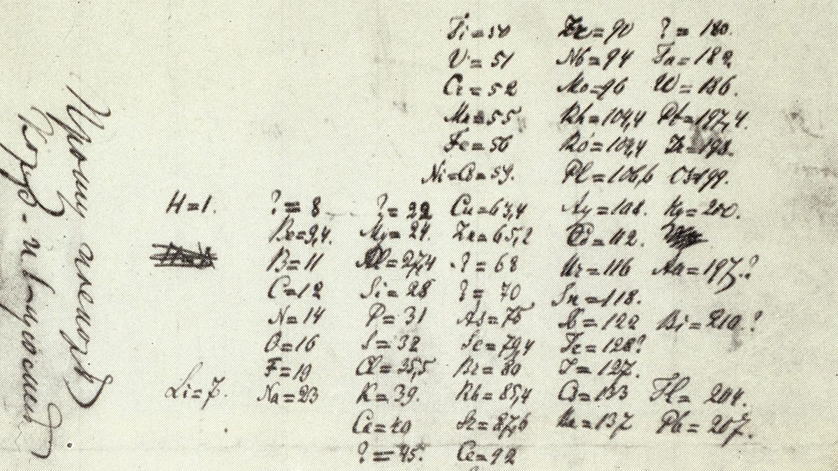 (Picture: Manuscript of Mendeleev's first periodic system of elements; Credit: Science & Society Picture Library/SSPL/Getty Images)