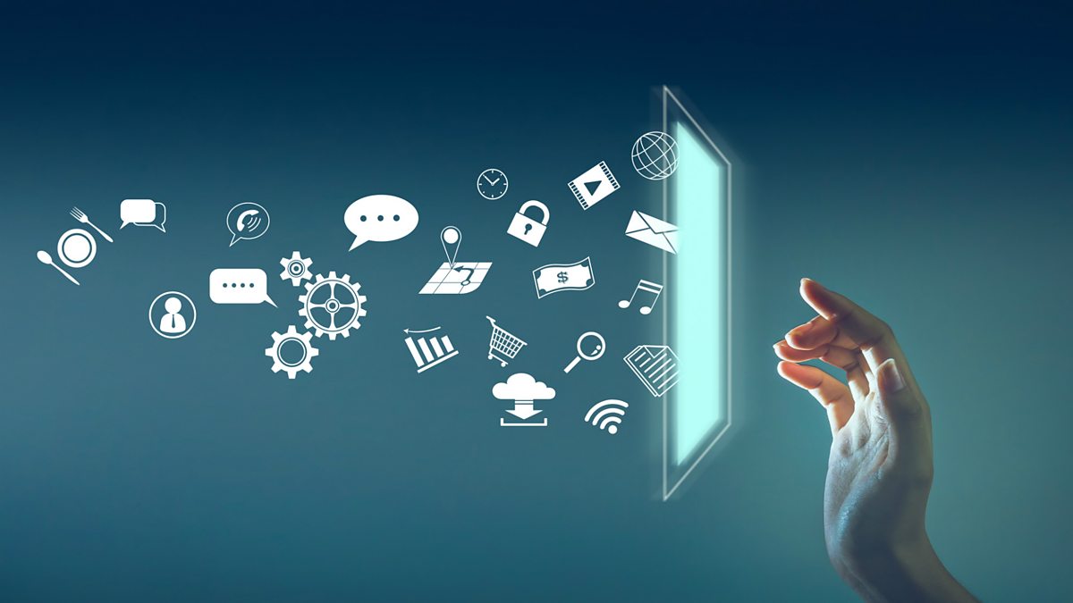 (Picture: A hand touching a screen and icons. Credit: Getty Images)