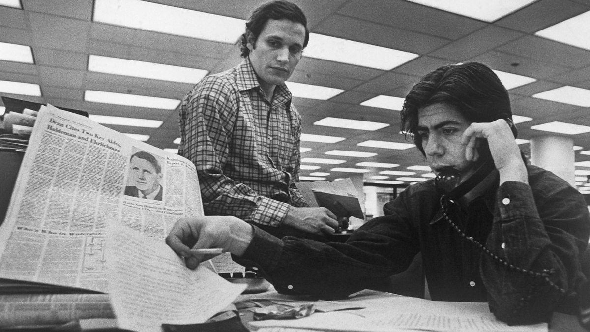 Picture: Bob Woodward (left) and Carl Bernstein, the Washington Post reporters who broke the Watergate story, at their desk, 29th April 1973. They nicknamed their anonymous source Deep Throat. (Credit: Getty Images)