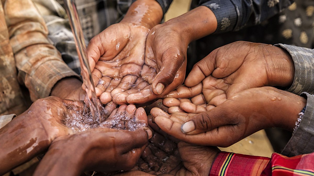 (Image: Children holding their hands up - asking for drinking water. Credit: Getty Images)