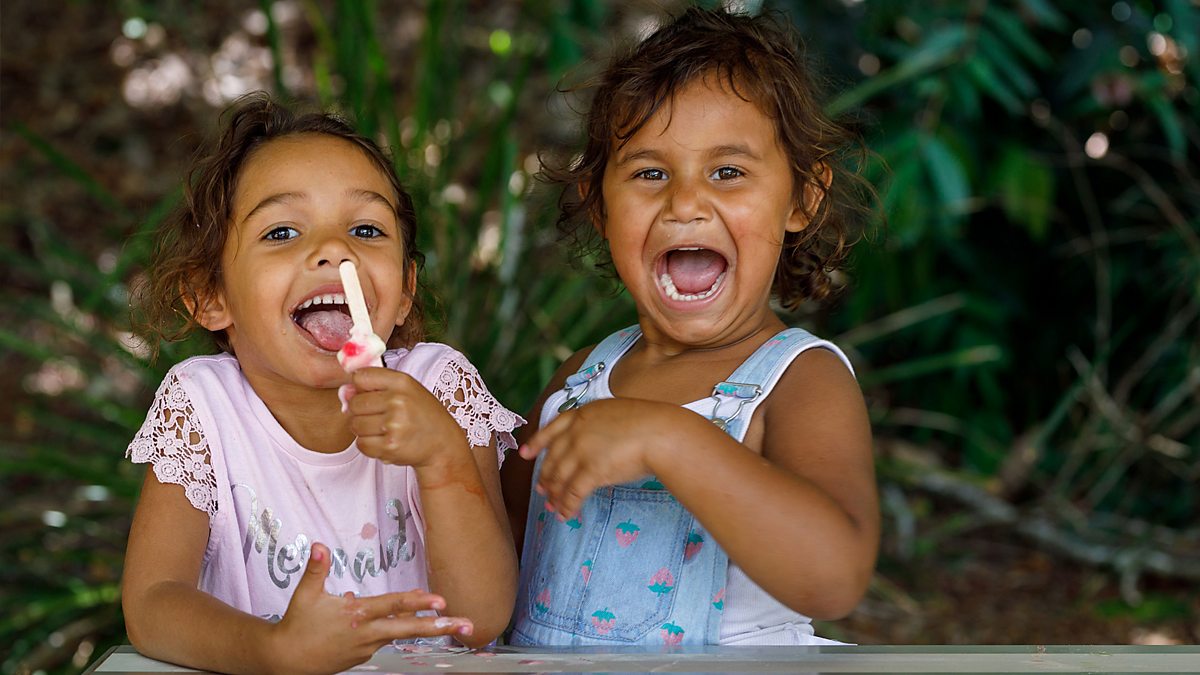 (Photo: Two young girls eating an ice-cream and Laughing. Credit: Getty Images)