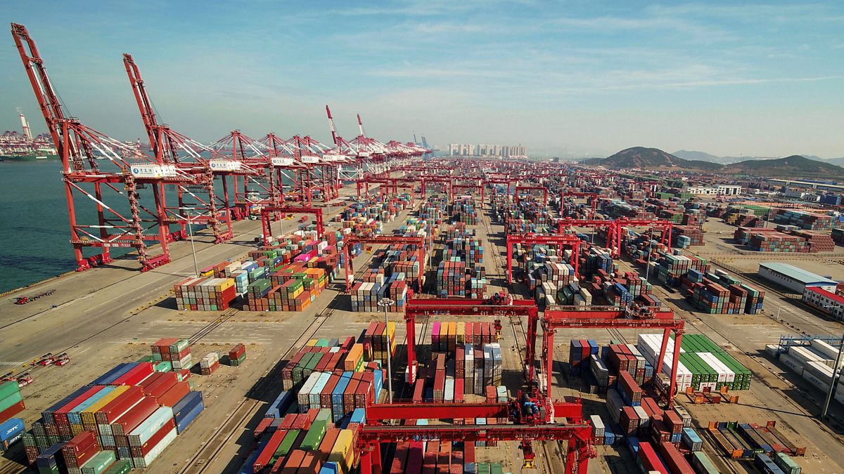 (An aerial view of a port in Qingdao, east China's Shandong province. Credit: STR/AFP/Getty Images)
