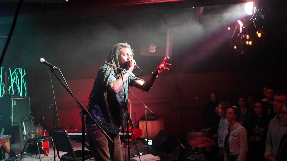 (Jason Petty is shown on stage performing under his spoken word artist and rapper name, Propaganda. Credit: Matthew Bell/The World)
