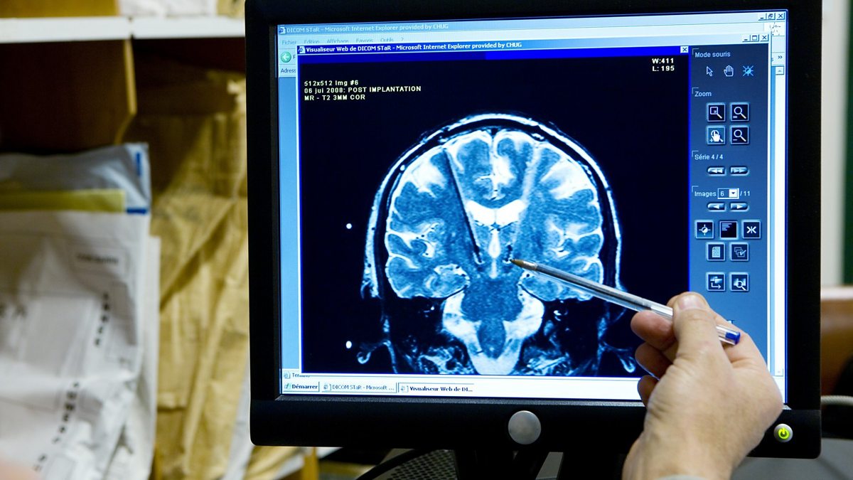 (Picture: MRI scan of a patient treated with a deep brain stimulation implant at Grenoble University Hospital in France; Credit: BSIP/UIG Via Getty Images)