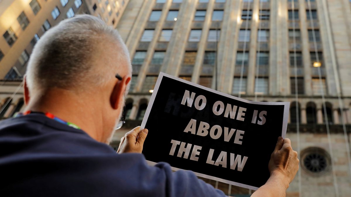 (Photo: A demonstrator showing support for an impeachment hearing in New York. Credit: Lucas Jackson/Reuters)