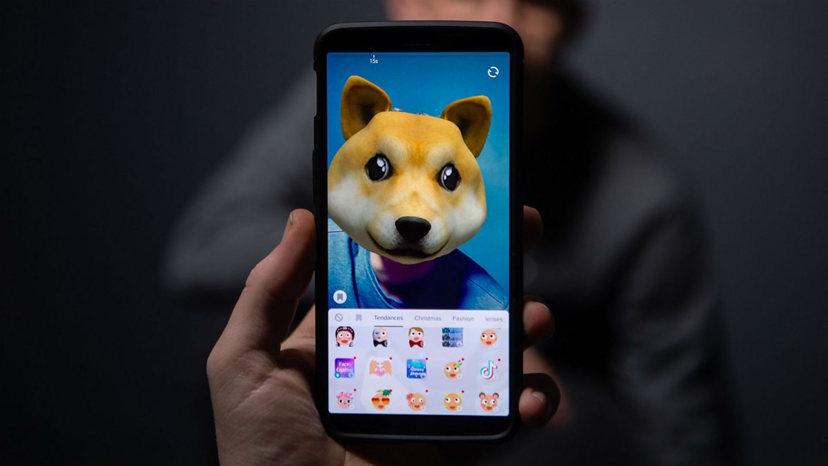 (Photo: Person taking a photo using a character filter in the TikTok app. Credit: AFP/ Getty Images)