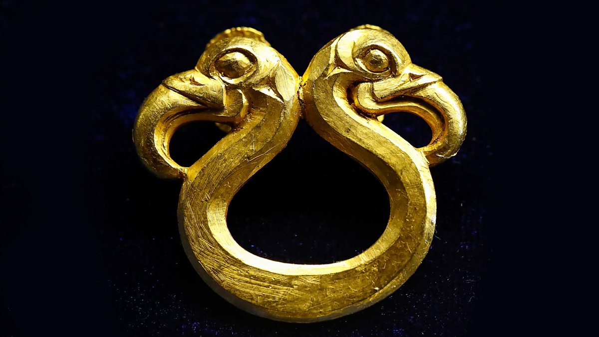 (Photo: A traditional animal-like piece of ornament on display at an exhibition of the treasures of the ancient Scythian burial mounds in the Siberian Valley of the Kings, held at the Tuva Republic National Museum in Kyzyl (Credit: Artyom Geodakyan/TASS/Getty Images)