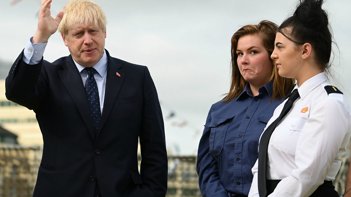 (Picture: The British prime minister Boris Johnson speaks to apprentices in London after the prorogation of parliament.