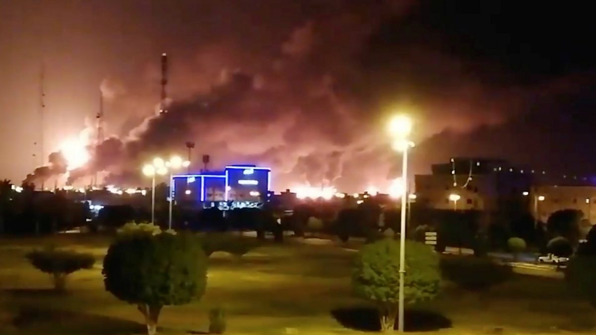 (Picture: Smoke billows from an Aramco factory in Abqaiq in Saudi Arabia
