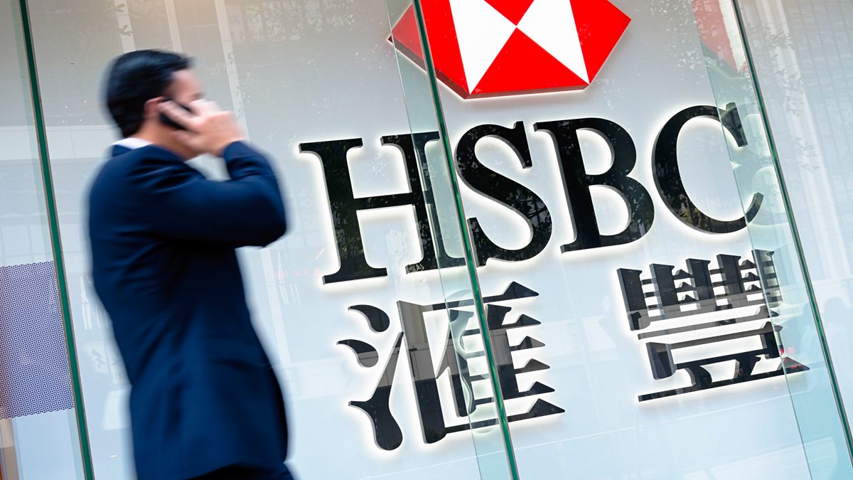 Photo: Business man passing by an HSBC Bank sign in Hong Kong; Credit: Getty Images