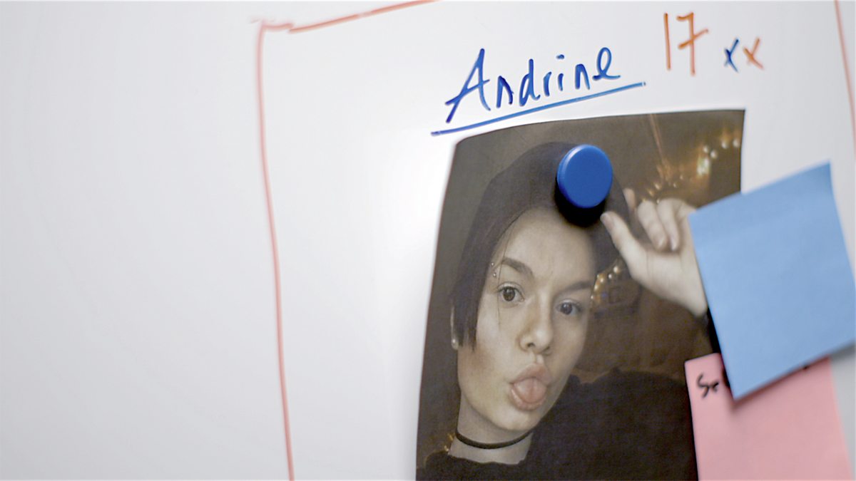 (Photo: A close-up of Andrine pinned on a noticeboard. Credit: BBC)