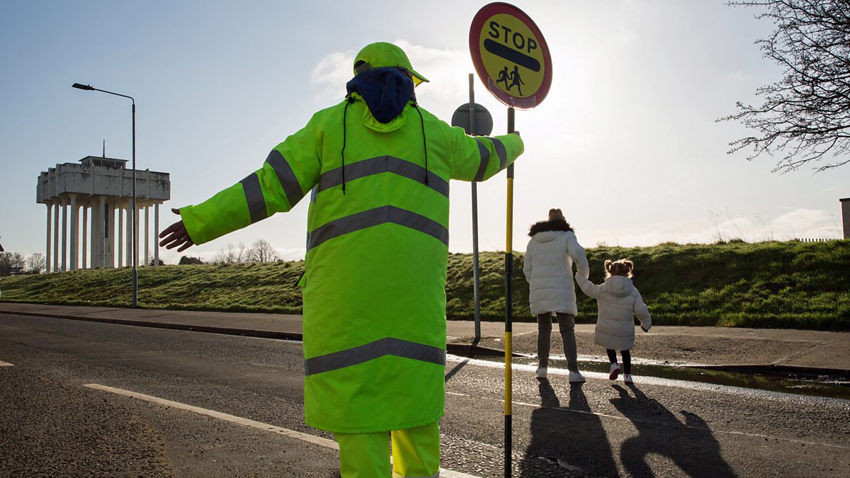 (Image: A lollipop lady helps children cross the road in Glasgow. Credit: EPA/Robert Perry)